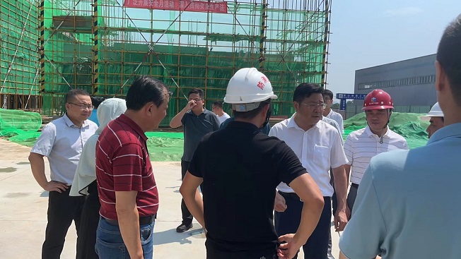 近日,黃山市天氣持續(xù)高溫酷熱,驕陽似火,黃山博盛消防裝備有限公司新廠區(qū)1-2#車間及研發(fā)中心工人仍堅守在施工一線,頂烈日,搶工期。7月26日上午,屯溪區(qū)委書記吳旭光、區(qū)委副書記、區(qū)長楊林,區(qū)人大常委會主任朱學軍,區(qū)政協(xié)主席袁震宇,區(qū)政協(xié)副主席杜祖紅等一行深入工地現(xiàn)場,開展“送清涼進工地”活動,看望慰問項目部一線職工。