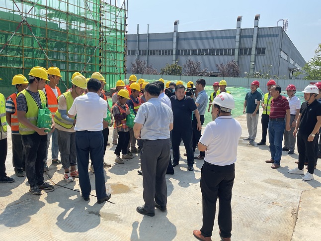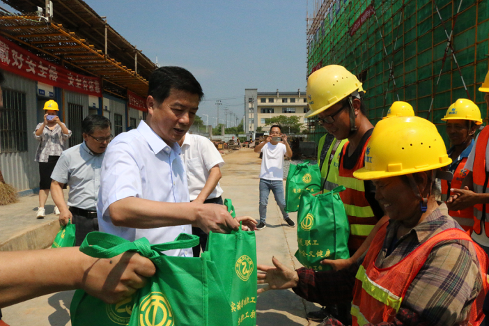 在項目施工現(xiàn)場,區(qū)委書記吳旭光代表區(qū)委區(qū)政府向在高溫下作出辛勤工作的工人們表示深深的敬意,將防暑降溫物品送到他們手中,并叮囑他們要勞逸結(jié)合,注意身體健康。并要求項目部要科學安排作息時間,制定高溫應急預案,加強施工現(xiàn)場安全管理,確保高溫時期工地安全生產(chǎn)形勢穩(wěn)定。