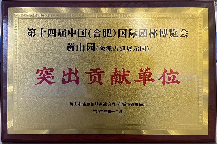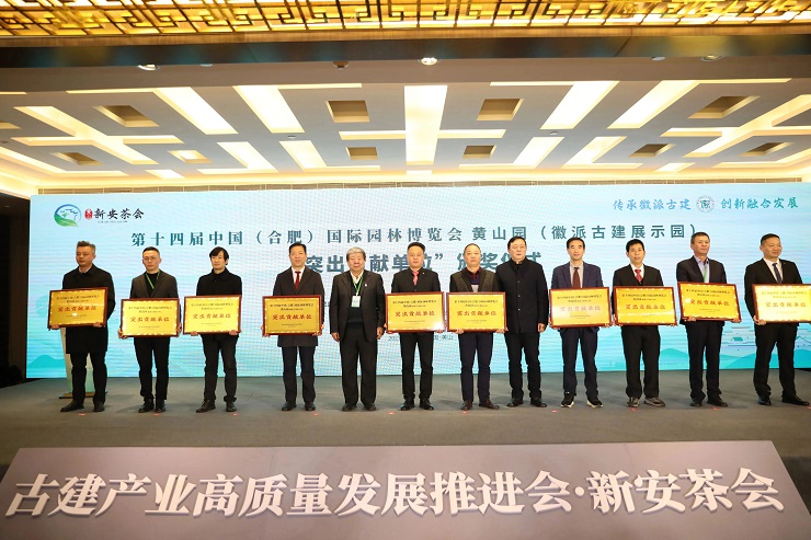12月18日下午,中國(黃山)第三屆徽派古建產(chǎn)業(yè)發(fā)展大會(huì)古建產(chǎn)業(yè)高質(zhì)量發(fā)展推進(jìn)會(huì)·新安茶會(huì)舉行。推進(jìn)會(huì)上頒發(fā)了第十四屆中國(合肥)國際園林博覽會(huì)黃山園(徽派古建展示園)“突出貢獻(xiàn)單位”獎(jiǎng)項(xiàng),作為黃山園項(xiàng)目參建單位之一的黃山建工集團(tuán)再獲殊榮。